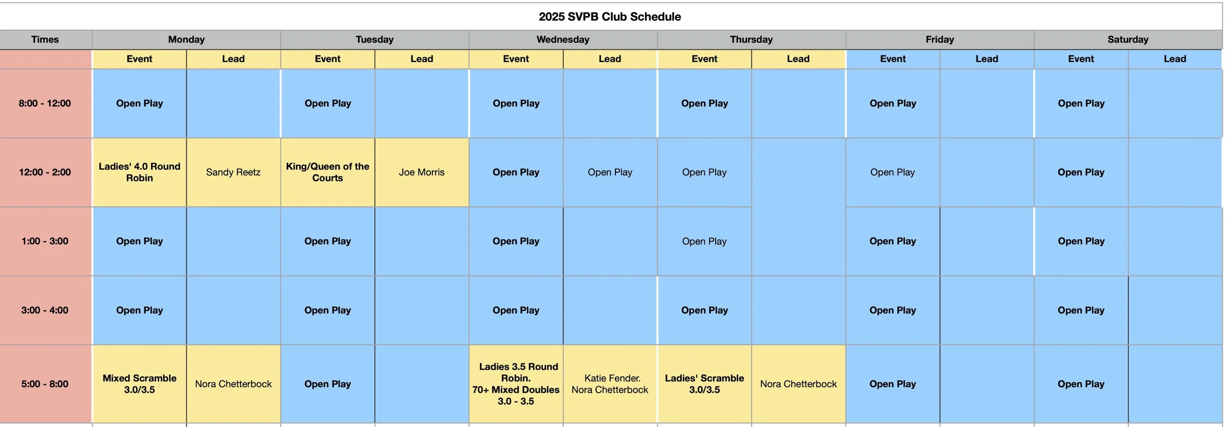 SVPC Club Potluck at the upper courts: 2:00 - 4:00
